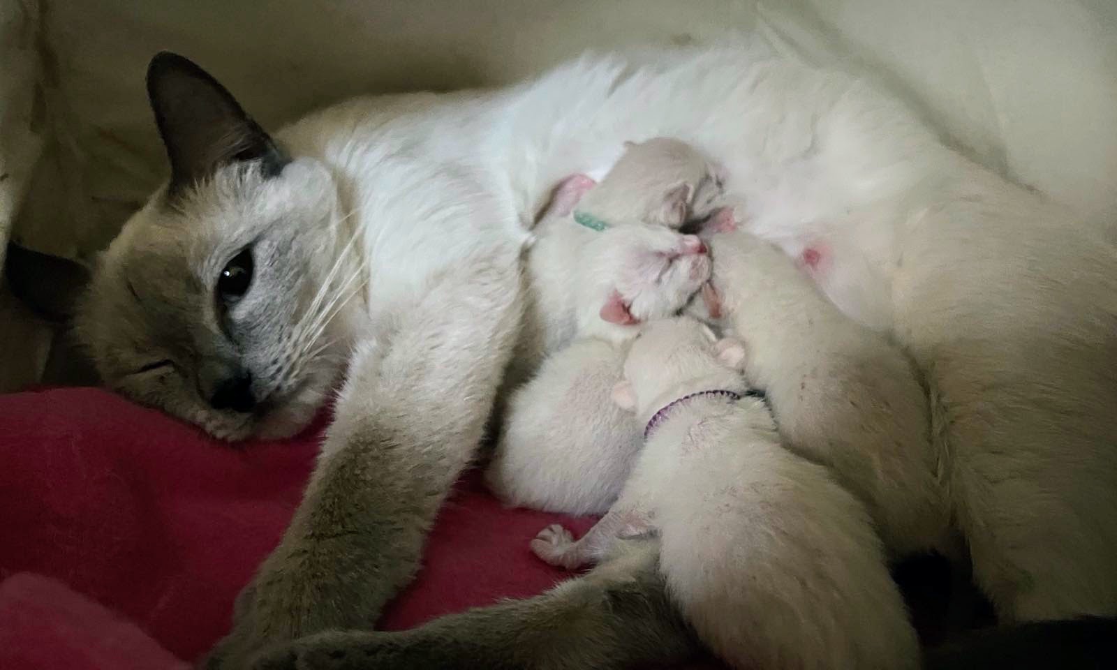 Our beloved princess FI*MoonJoy Aphrodite gave birth to four sweet thai-kittens on Tuesday 21.10.2025. The lovely father called "Momo" (FI*BlueMoonTreasure Bonzo) is exceptionally affectionate by nature and has blue eyes like sapphire!